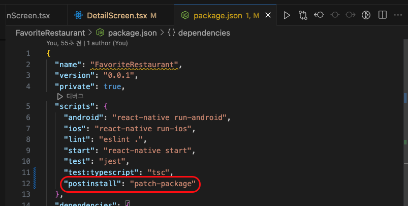 2)package.json 의 script 부분에서 postInstall 선언