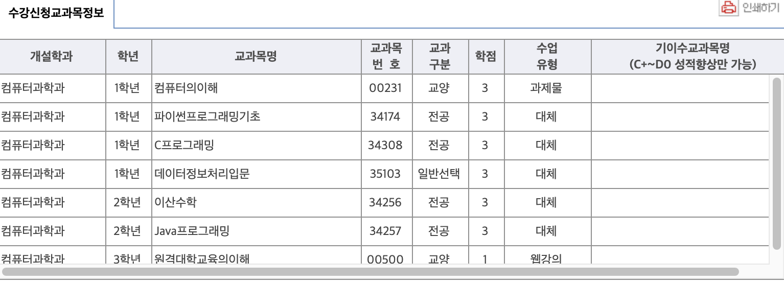 정말 전공 꽉꽉 채워서 수강신청했고,