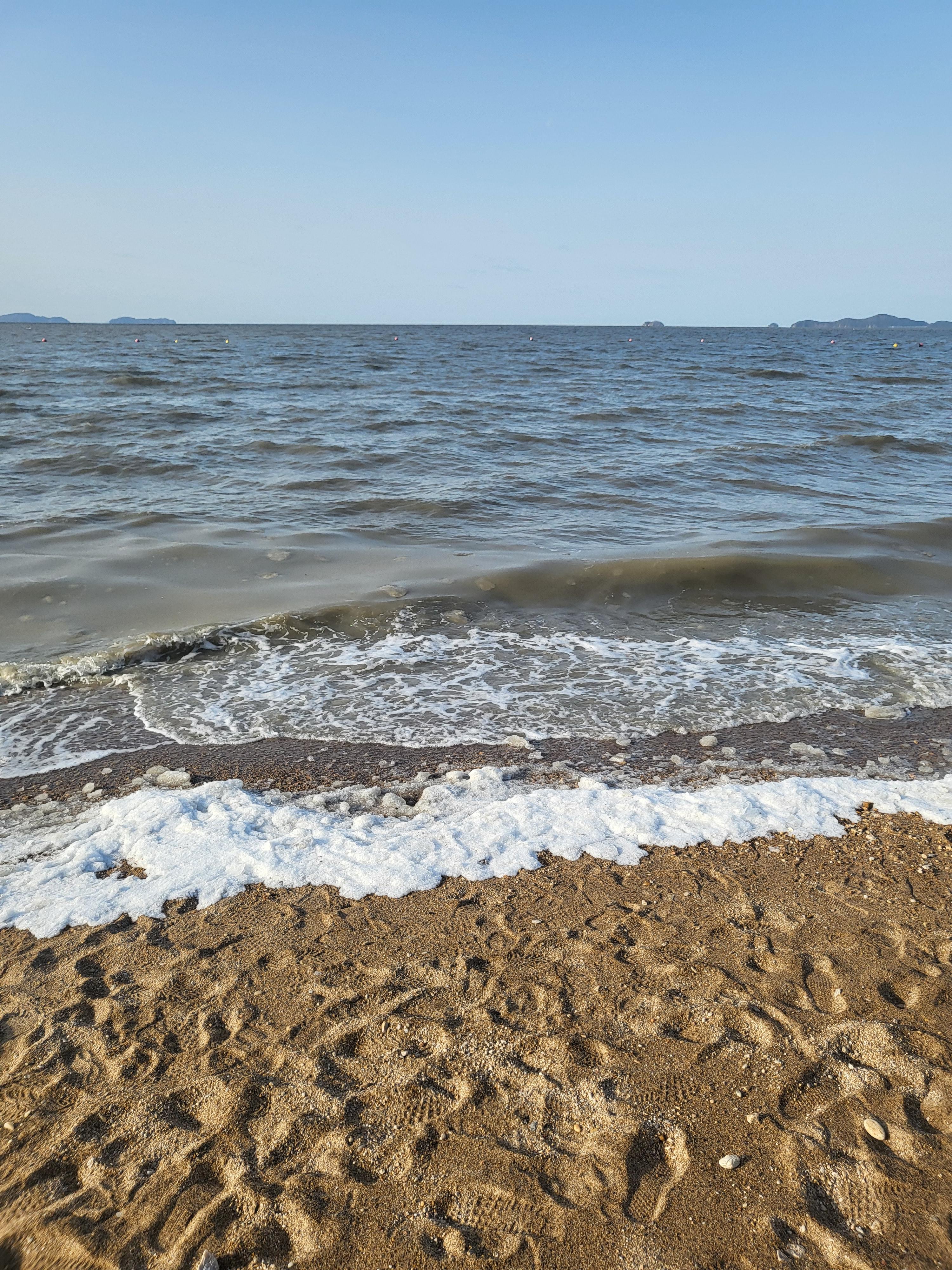파도가 치면서 끝에는 얼어붙은 물의 모양이 거품 같기도 하고, 생크림 같기도 했다. 신기했다.