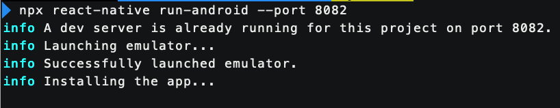 3. npx react-native run-android --port=8082 이렇게 하니까 8082에 연결되었다.
