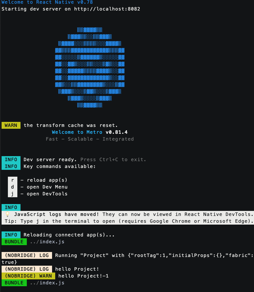 react-native 버전 0.78.1 빌드가 되었는데, console.log가 메트로에 찍히지 않았다.!